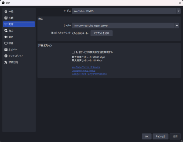 YouTubeやTwitchとかに送る場合はテンプレが用意されてるので、アカウント連携すればすぐに配信ができるようになってます~