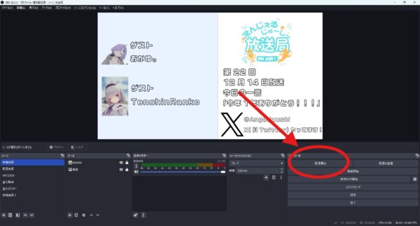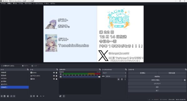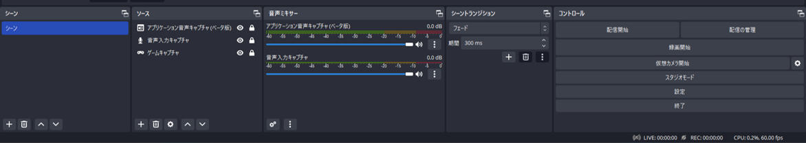 コントロールでは、配信や録画の開始・停止をするときや、プレビュー(配信に流す前の画を確認するもの)が見れるスタジオモード、仮想カメラのオンオフ等ができるようになってます~