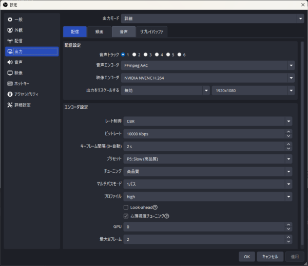 「出力」は、映像ビットレートやエンコーダーとかの設定になってきます!