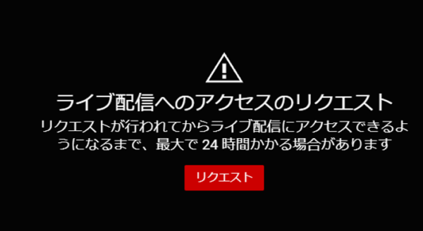この写真の通り、配信始める24時間前には「ライブ配信へのアクセスのリクエスト」を行いましょう~!